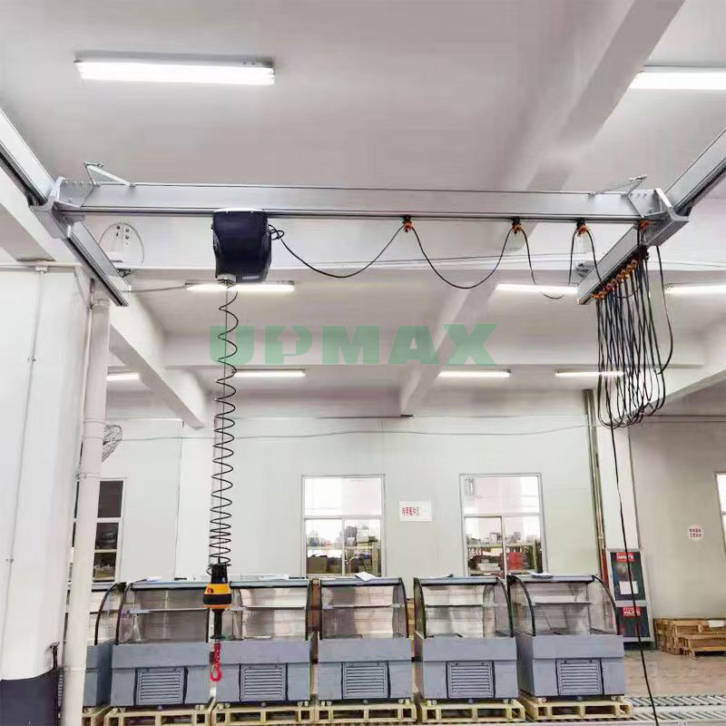 智能折臂吊适合以下工况:狭窄空间作业智能折臂吊的折叠结构可绕过障碍物,深入设备内部或狭窄区域进行吊运,例如汽车制造厂的装配线、机床加工区域等。频繁短距离吊运适用